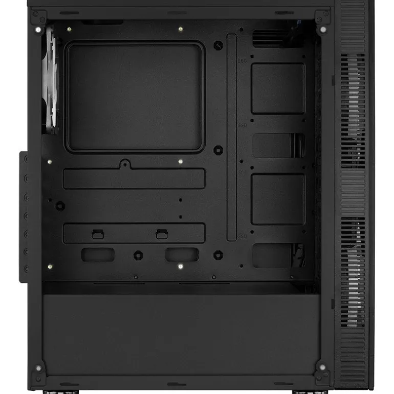 - Ventilación de aire mejorada: Las salidas de aire en el lateral del panel frontal aumentan el flujo de aire y la ventilación para un rendimiento de enfriamiento superior.
