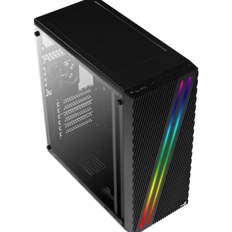 - Franjas RGB: Una franja LED RGB de diseño único en el panel frontal ofrece un look espectacular para tu caja.