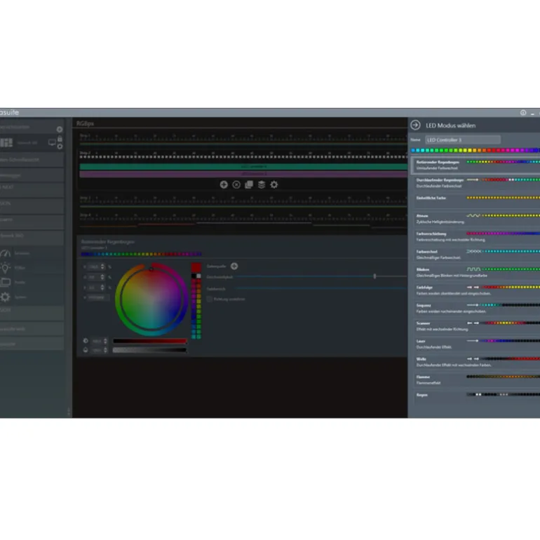 Cada uno de los cuatro canales RGBpx del farbwerk 360 puede controlar 90 LED direccionables de forma independiente. El color y el brillo se pueden controlar individualmente para cada LED. En total, se pueden configurar hasta 20 grupos de LED de diferentes tamaños, y se pueden asignar efectos visuales a cada grupo. Los 23 efectos disponibles se pueden ajustar ampliamente para una mayor personalización. Muchos efectos también se pueden configurar para modificar los parámetros del efecto (por ejemplo, la velocidad) dependiendo de los datos actuales del sensor. Los efectos disponibles también incluyen efectos de sonido a luz, visualizando la salida de sonido de la computadora. El efecto AMBIENTpx merece un aviso especial, replicando el área del borde de la pantalla del monitor actual en los LED conectados, lo que permite una impresionante iluminación de fondo que rodea el monitor.