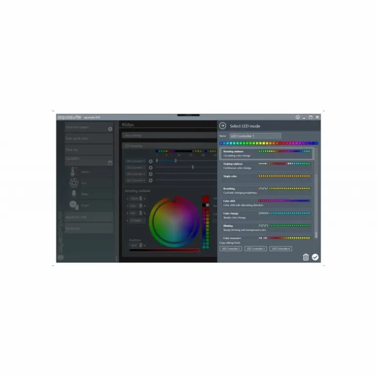 El QUADRO tiene una salida RGBpx para el control individual de hasta 64 LED direccionables. Cada LED se puede configurar individualmente en color y brillo. Se puede configurar un total de cuatro grupos de LED de tamaño variable, a los que se pueden asignar efectos visuales. Los 23 efectos disponibles ofrecen amplias opciones de configuración para una mayor individualización. Muchos efectos también ofrecen la opción de modificar los parámetros del efecto (por ejemplo, la velocidad) dependiendo de los valores actuales del sensor. Los efectos disponibles también incluyen efectos de sonido a luz que reaccionan al sonido emitido actualmente por la computadora. Una característica sobresaliente es el efecto AMBIENTpx, que permite que las áreas de borde del contenido actual de la pantalla se reproduzcan en los LED conectados, creando así una luz de fondo muy efectiva alrededor de la pantalla de la computadora.