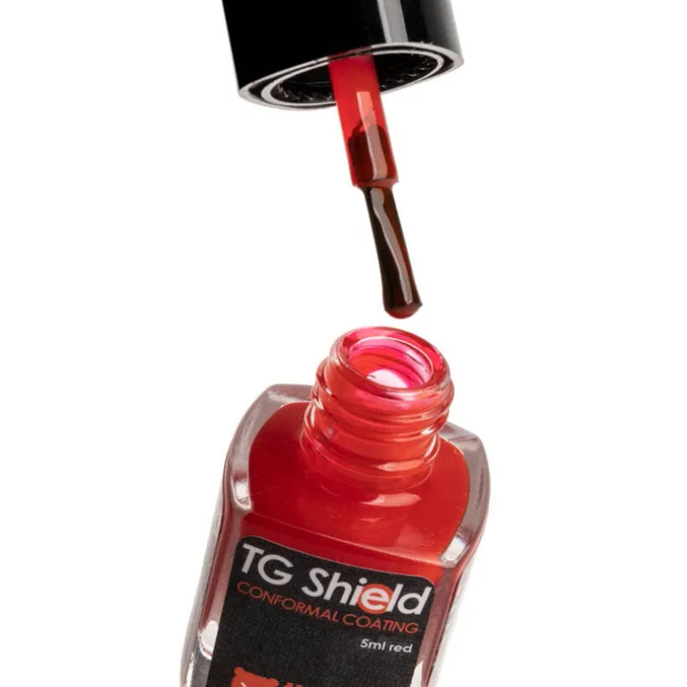 TG Shield fue desarrollado especialmente para proteger componentes sensibles, como los componentes alrededor de la matriz de la CPU o la GPU. El barniz aísla de forma fiable contra líquidos y electricidad . Ya no tiene que preocuparse por daños o cortocircuitos al aplicar metal líquido u otros agentes de transferencia de calor eléctricamente conductores.