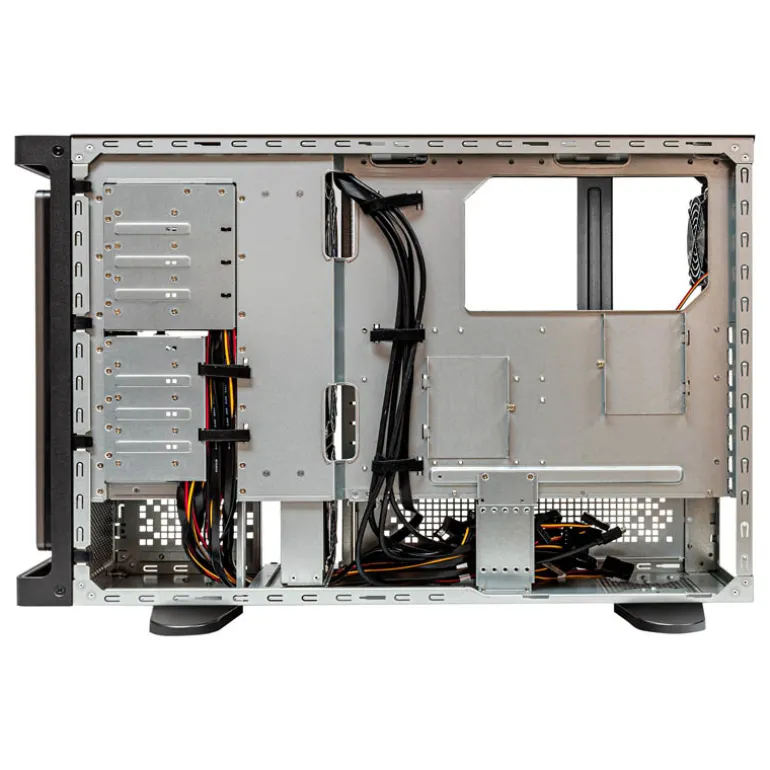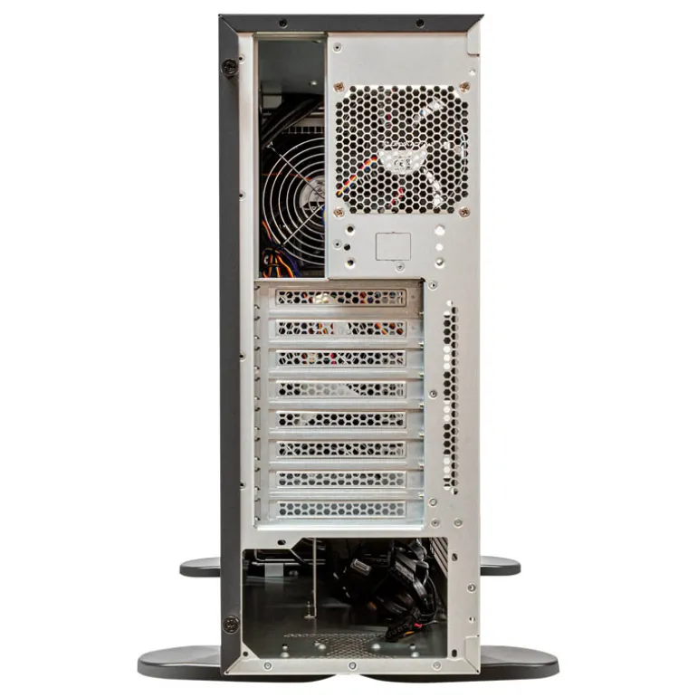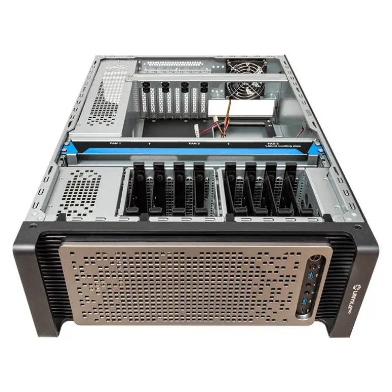Equipado con 8 bahías internas de 3.5″ y dos de 2.5″, junto con 8 ranuras estándar de expansión PCIe, la estación de trabajo puede albergar hasta 4 GPUs, satisfaciendo así las necesidades más exigentes del sector en términos de capacidad de procesamiento gráfico y computacional.