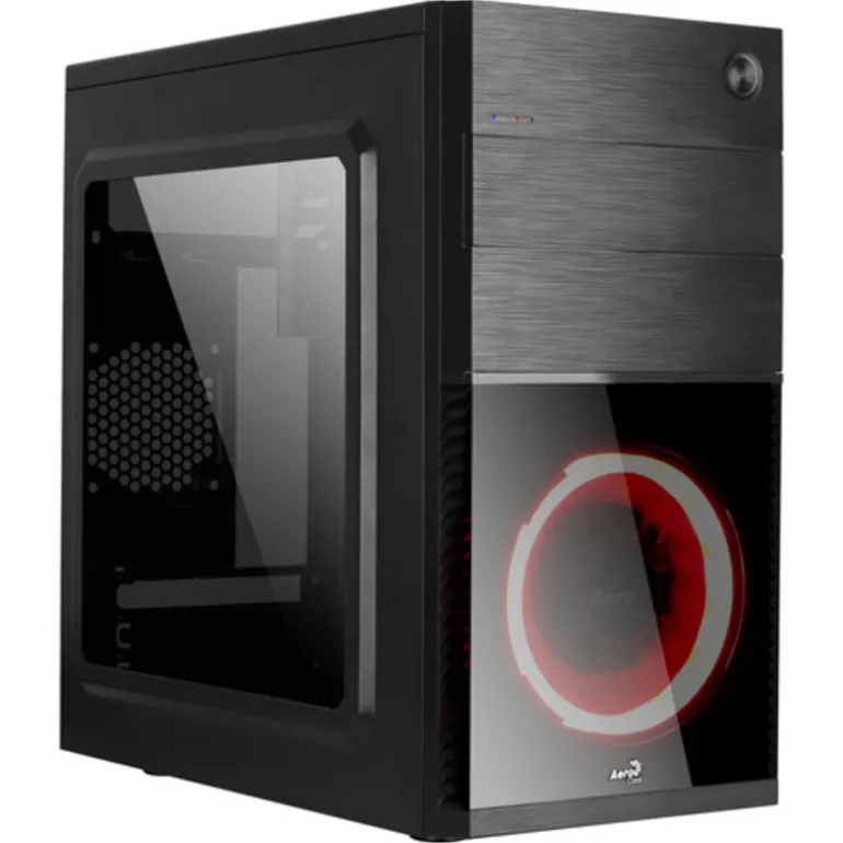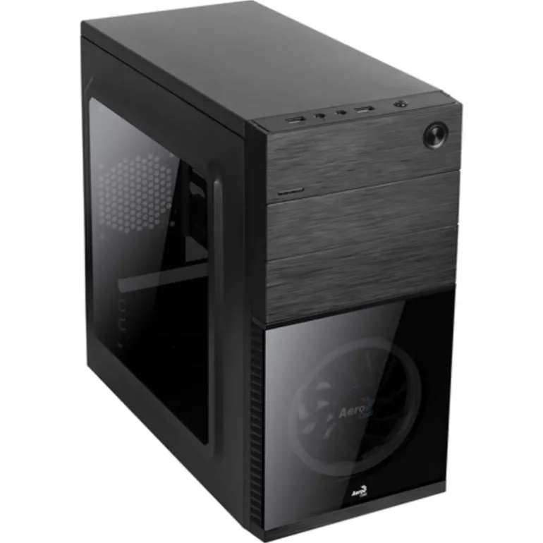 - Torre Micro ATX con acabado de aluminio pulido y ventana frontal acrílica