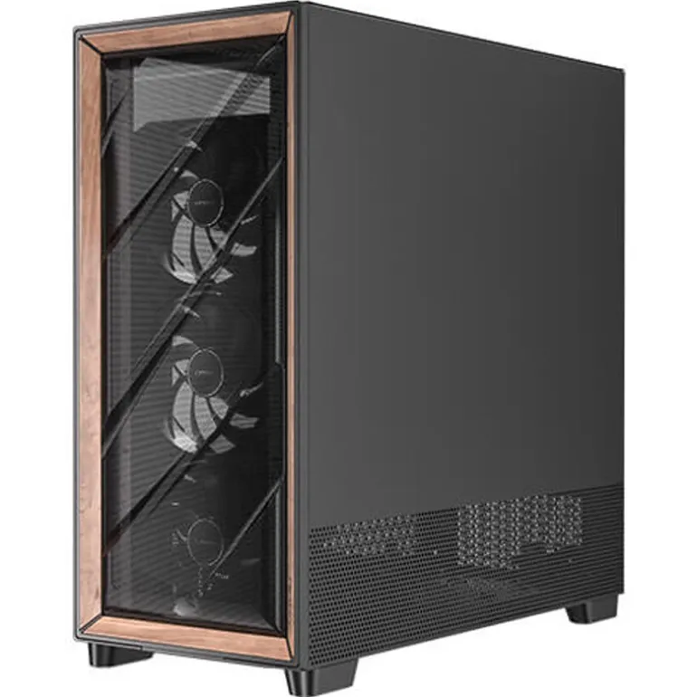 Diseño de ventilación multidireccional, con amplias tomas de aire en la parte inferior, la cámara de suministro de energía y los lados inferiores, junto con rejillas de ventilación superiores y malla de gran superficie en la parte delantera, creando un canal de flujo de aire Antec Flux dedicado.