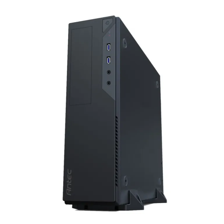 VSK2000-U3 de Antec, una caja para equipo sobremesa delgada que es notablemente resistente para su tamaño modesto, lo que la convierte en la caja perfecta para integradores de sistemas. Incorpora un mecanismo de extracción de discos duros rápido y sin herramientas para una rápida instalación con el mínimo esfuerzo. La base incluída le permite la instalación en vertial de la caja VSK2000-U3, lo que es ideal para ahorrar espacio en su escritorio. Este modesto chasis admite placas base con factor de forma tanto Micro ATX como Mini ATX. Es necesaria una fuente de alimentación con factor de forma TFX.