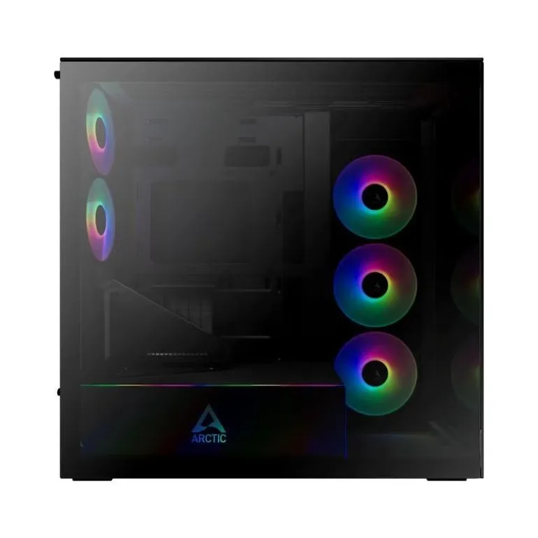 La Arctic Xtender VG Negro es una semitorre premium con doble panel de vidrio templado y diseño tipo 鈥渁quarium鈥áxima visibilidad del hardware. Soporta placas E-ATX y refrigeración líquida extrema con radiadores de hasta 420 mm en posición superior y lateral, además de incluir 5 ventiladores P-series de alto rendimiento. Incorpora montaje vertical de GPU con riser PCIe 4.0 y una estructura optimizada para flujo de aire, montaje limpio y estética profesional.