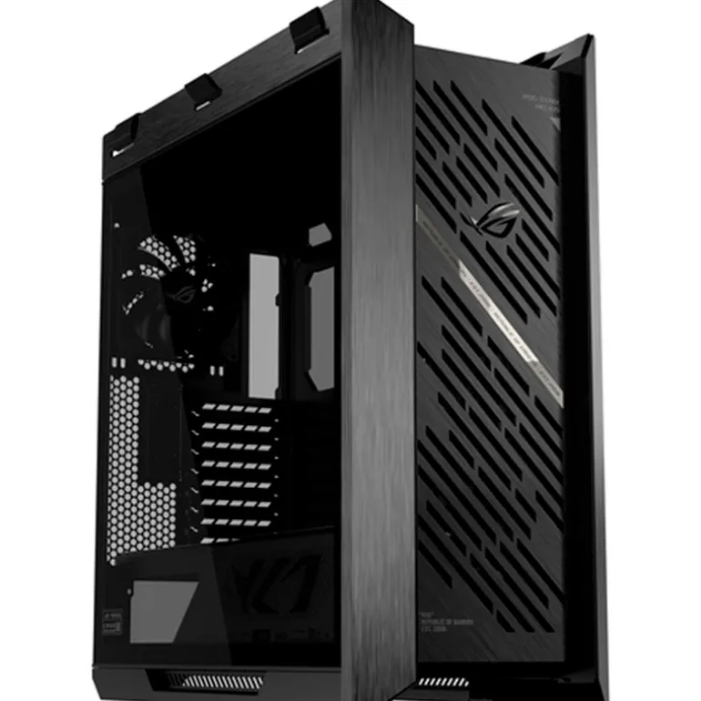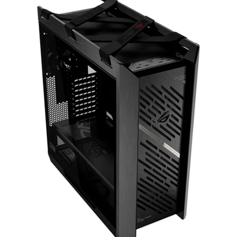 El ROG Strix Helios II está pensado para montajes de vitrina, con dos paneles laterales de cristal templado de 4 mm de grosor encajados en un refinado marco de aluminio cepillado. El panel frontal de aluminio, con un diseño de rejilla en forma de diamante, se fabrica con tecnología de fresado CNC de alta precisión y un proceso de anodizado. Las barras diagonales de la parte delantera se inspiran en la elegancia y la individualidad de los coches de carreras para hacer que el Helios II sea único. Con bordes redondeados, una forma aerodinámica y costuras ocultas, este chasis es más elegante que nunca.