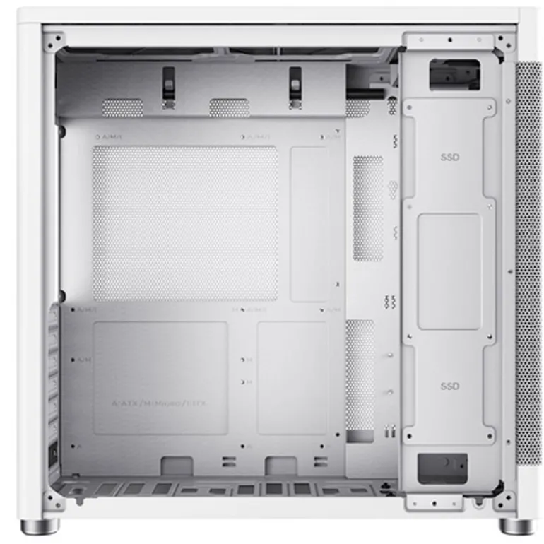 Diseño modular: cuenta con panel superior desmontable y manejo eficiente del cableado para mejor aprovechamiento del espacio interior, y un innovador sistema de flujo de aire vertical con filtros anti polvo superior e inferior.
