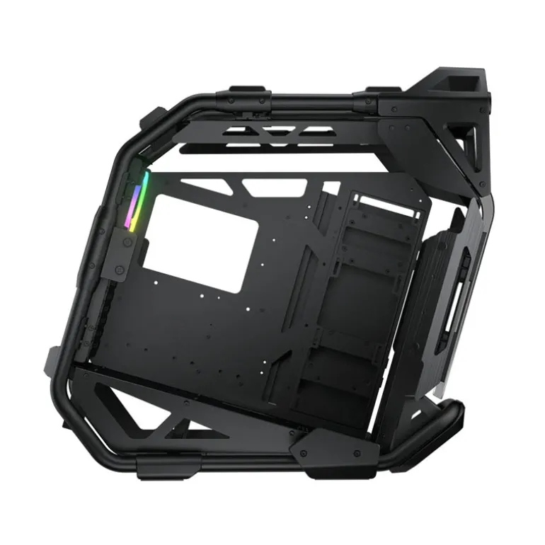 El Cratus combina tubos de acero trabajados con precisión con vidrio templado contorneado en una síntesis de escultura y artesanía sin desviación. Los paneles totalmente transparentes muestran una gran cantidad de espacio para componentes de alta gama e infinitas opciones de modificación.