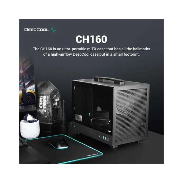 La CH160 es una caja ultraportable de formato mini-ITX que tiene todas las características de una caja DeepCool, pero un tamaño menor. El diseño interno proporciona una gran flexibilidad para las diferentes opciones de PSU y discos.