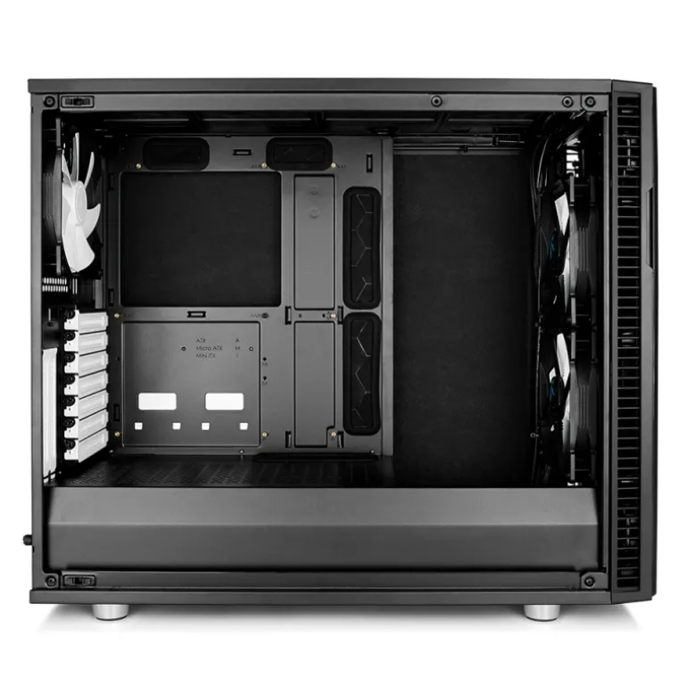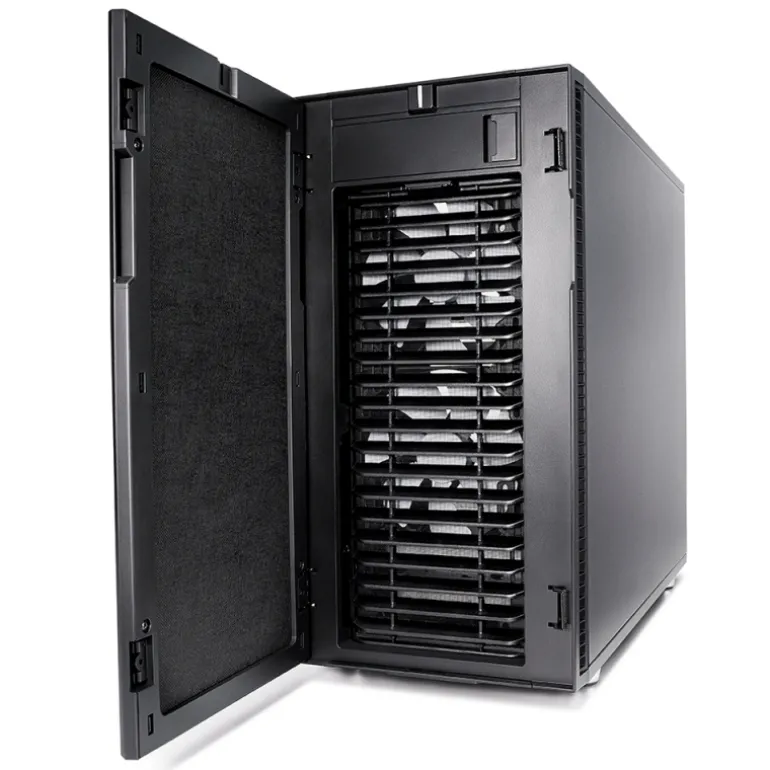 El vidrio templado transparente y los paneles de acero con amortiguación acústica con un elegante mecanismo de enclavamiento de empujar para cerrar encierran un interior completamente rediseñado con soporte de componentes y flexibilidad de almacenamiento sin precedentes. Se pueden instalar seis unidades de 3.5 «/ 2.5» y dos unidades de 2.5 «con colocación de precisión en innumerables configuraciones en toda la carcasa.