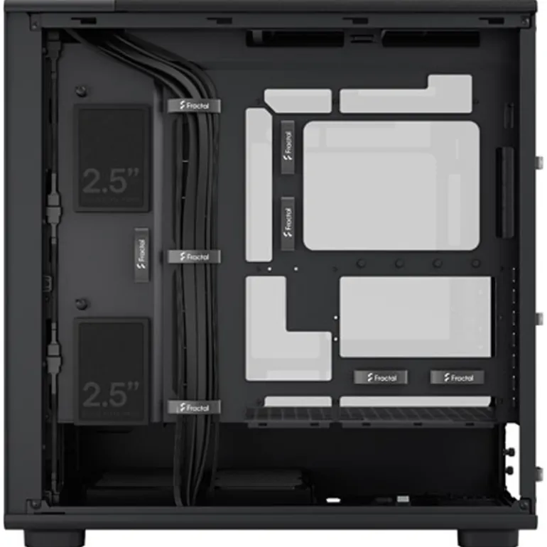 Interior pensado para un acabado limpio con pasacables con ojales de goma, bridas autoadherentes deslizantes y amplio espacio tras la placa, facilitando un montaje ordenado y mejorando también el flujo de aire.