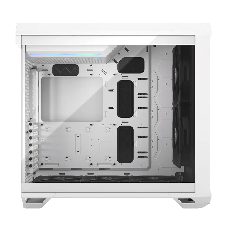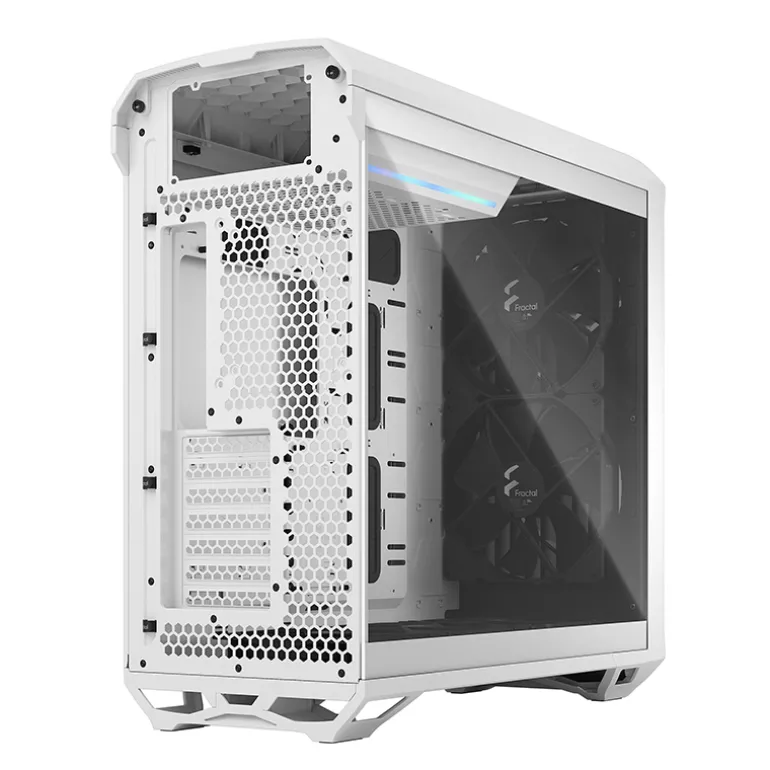 Imágenes de alta resolución del Fractal Design Torrent en su acabado de «White TG Clear Tint», mostrando el producto desde varios ángulos para apreciar su estética y diseño.