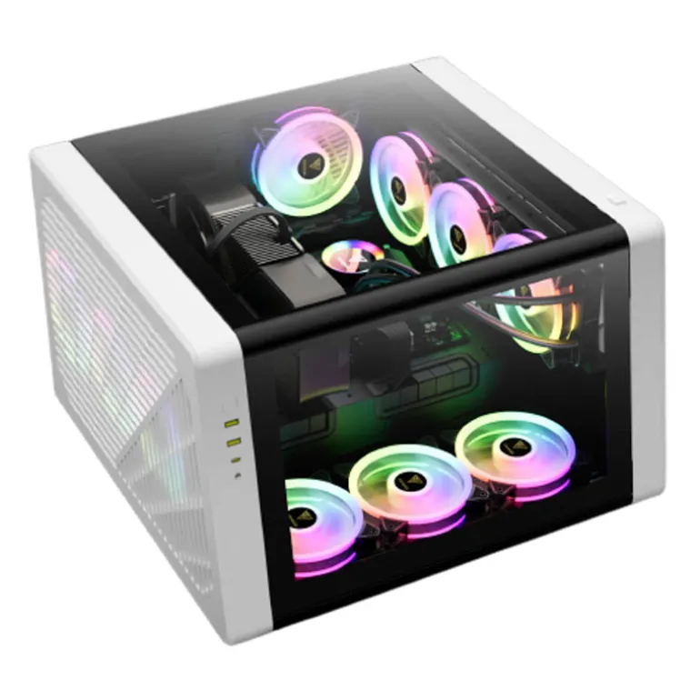 La caja utiliza pedestales modulares para girarla de forma fluida de vertical a horizontal, aprovechando el flujo de aire sólido y la estabilidad. Una nueva orientación de la caja brinda una apariencia más fresca y desbloquea una experiencia de construcción completamente nueva.