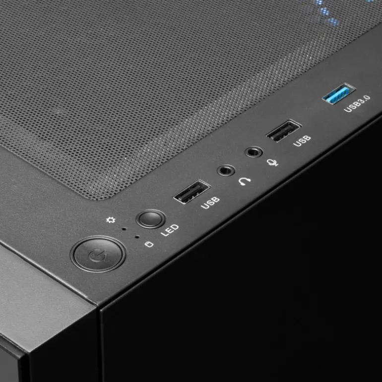 El TALOS E3 es una caja de media torre compacta de primera calidad con una moderna perspectiva en negro mate. Con 3 ventiladores ARGB incorporados de 120 mm, vidrio templado en el panel frontal y lateral y un diseño de cubierta de fuente de alimentación para un diseño minimalista.