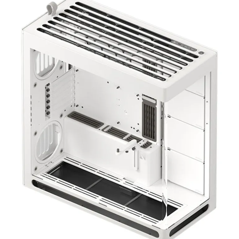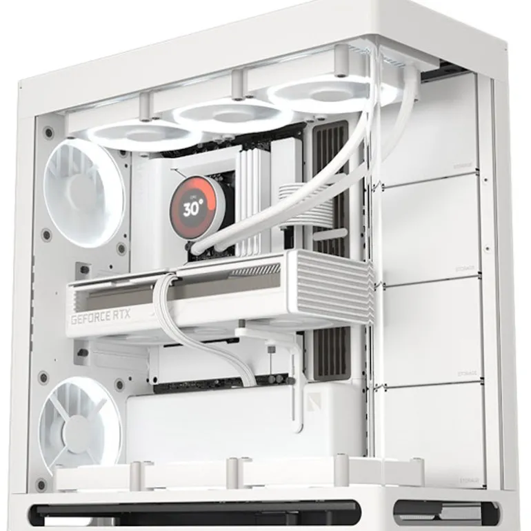 La GPU ocupa un lugar central dentro de la estructura híbrida de HAVN, poniéndola en pantalla completa detrás del vidrio panorámico UniSheet. Este diseño optimiza el flujo de aire de la GPU y resalta los componentes más importantes.