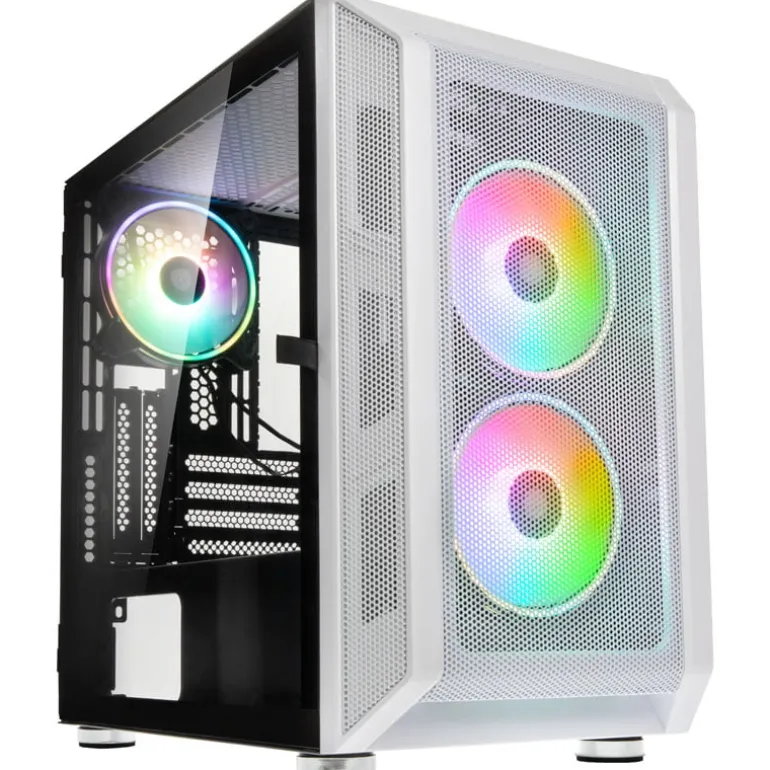Para aquellos que buscan un sistema compacto con flujo de aire sustancial e iluminación ARGB, el Kolink Citadel Mesh RGB Micro-ATX es ideal. Con un panel frontal de malla completo con dos ventiladores ARGB LED PWM de 120 mm, la malla de ciudadela Kolink tiene una variedad de efectos y modos de iluminación, controlados a través del controlador suministrado o mediante un software compatible con la placa base. Con una bisagra en el panel lateral de vidrio templado, sus componentes e iluminación estarán a la vista, permitiendo algunos resultados impresionantes.