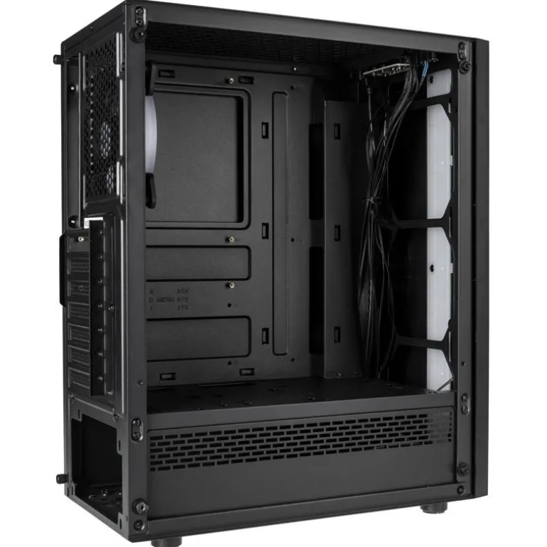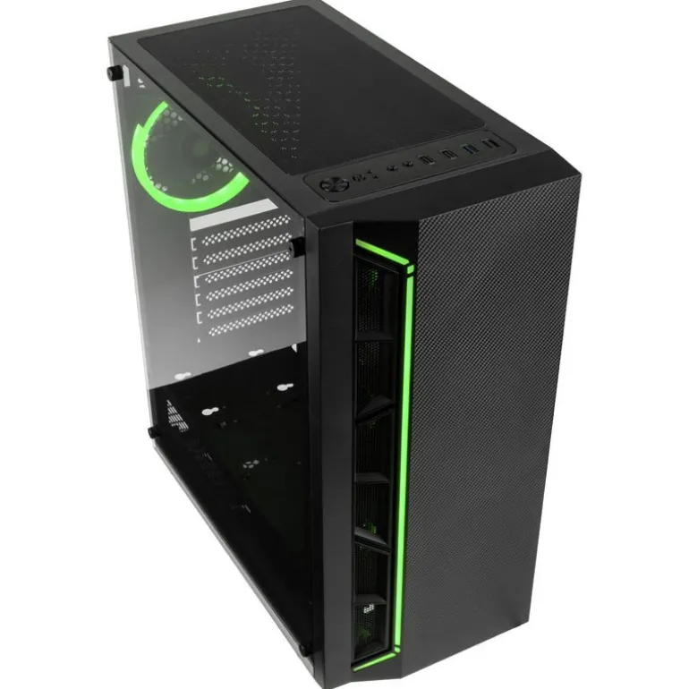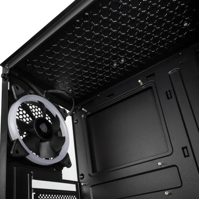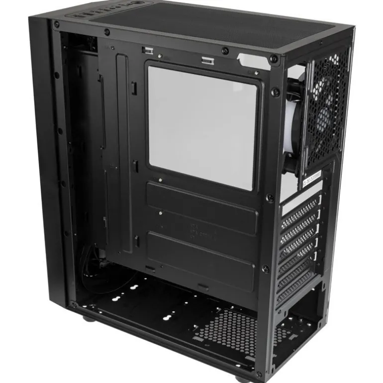 Además de los ventiladores preinstalados, los usuarios también pueden instalar tres ventiladores de 120 mm en el panel frontal y dos ventiladores más de 120 mm en el techo. Un panel lateral de vidrio templado completo muestra la construcción de su sistema con estilo.