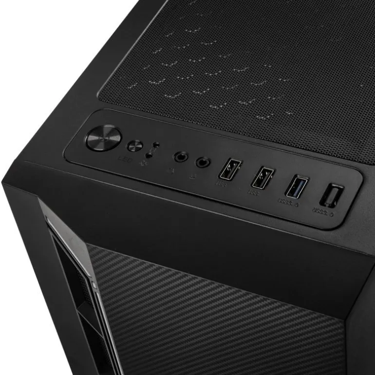 Las tarjetas gráficas pueden tener hasta 33,5 cm de largo (31 cm si monta un AIO frontal) y refrigeradores de CPU de hasta 16 cm de alto. Además, el panel de E / S ubicado en la parte frontal tiene dos puertos USB 2.0, así como un puerto USB 3.0 Tipo A.