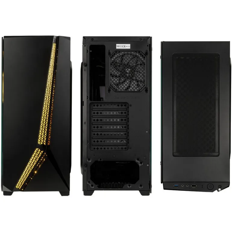 La inteligente combinación de guías de cable y bridas significa que a los usuarios les encantará el diseño de su nuevo sistema en Quantum. El espacioso interior completo con su equipo de juego se puede admirar a través del panel lateral de vidrio templado. El recorte de malla diagonal con filtro de polvo está iluminado con LED RGB direccionables digitalmente, cuyo control es posible gracias a la presencia del interruptor en el panel de E / S que también permite un acceso práctico para cambiar entre efectos de luz, y esto también es cierto para la iluminación en el ventilador montado en la parte trasera. Alternativamente, la iluminación RGB de la tira y el ventilador se puede controlar conectándolo directamente a su placa base. Esto permite que el interruptor RGB en el panel de E / S se use como botón de reinicio. Además del interruptor RGB / Reset, también hay un práctico puerto USB 3.0 y dos puertos USB 2.0 junto con las tomas estándar de 3.5 mm para auriculares y micrófonos, sin mencionar los LED de alimentación y HDD.