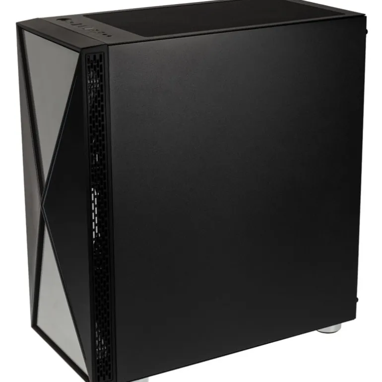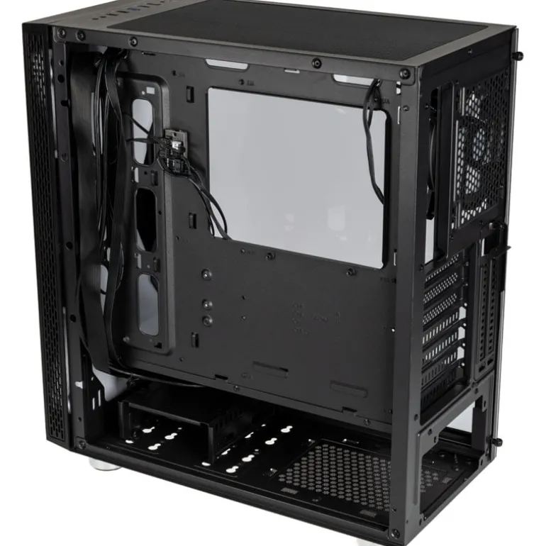Un panel lateral de vidrio templado completo muestra la construcción de su sistema con estilo, con ventilación en ambos lados del panel frontal.