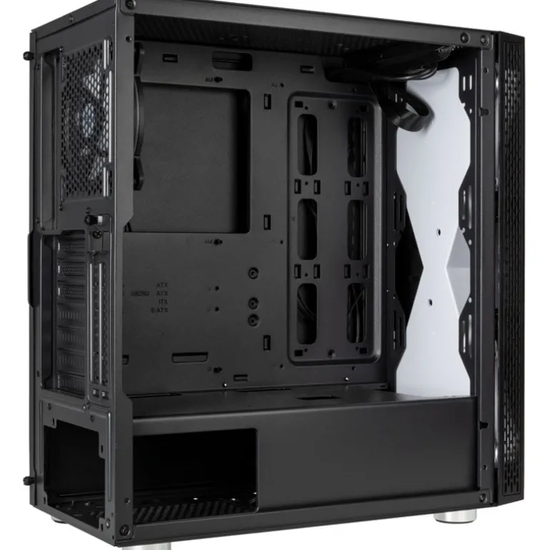 Las tarjetas gráficas pueden tener hasta 36 cm de longitud y los refrigeradores de CPU hasta 17,5 cm de altura. Además, el panel de E/S situado en la parte frontal posee un par de puertos USB3.0 Tipo-A, así como dos puertos USB2.0, HD-Audio, Mic y un botón de reinicio/RGB.