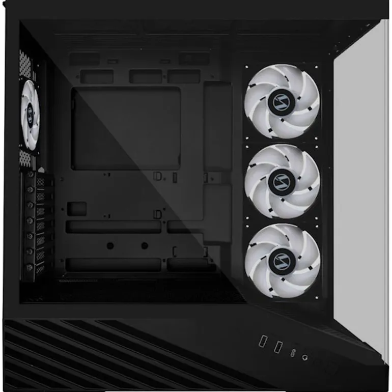 Tanto el panel frontal como el lateral están hechos de vidrio templado de 4 mm, lo que ofrece una estética moderna y limpia al tiempo que proporciona un escaparate ideal para los componentes internos. Disfruta de una iluminación RGB completa con una visibilidad perfecta y sin ángulos, que se controla sin esfuerzo con solo tocar un botón.