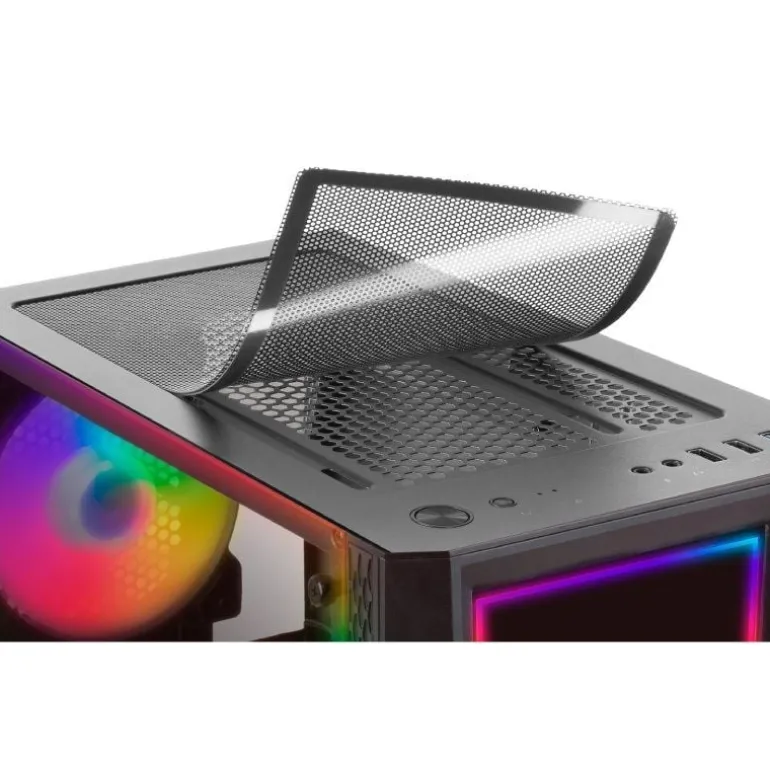 - Iluminación RGB Chroma frontal 12 modos de luz (Tira LED frontal ARGB + Ventilador trasero RGB fija)