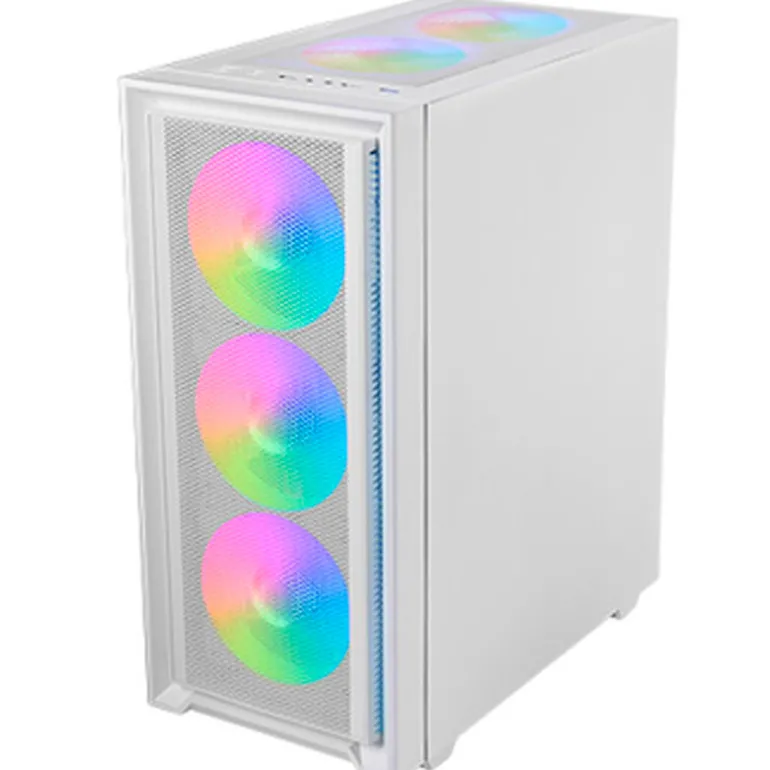 La caja MC-AIR combina alto rendimiento y diseño con su elegante frontal Mesh y 4 ventiladores FRGB Rainbow de 120mm preinstalados (3 en el panel frontal y 1 en la parte trasera). Su ventana lateral de cristal templado permite exhibir tu configuración con estilo, mientras su diseño de doble cámara optimiza el flujo de aire para mantener tus componentes en temperaturas óptimas.