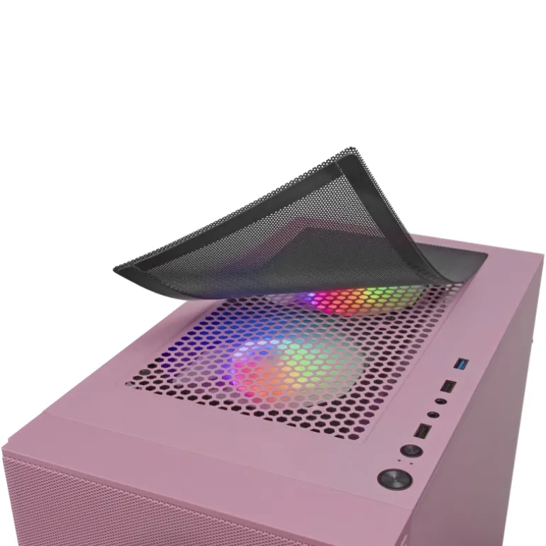 - DISEÑO GAMING ESPECTACULAR: Da el salto al PC de tus sueños con la estética más cuidada hasta el último de los detalles: ventana lateral, 2x ventiladores frontales FRGB tras una rejilla metálica, controles y conexiones en la parte superior, pies de elevación XL… Todo ello en 3 colores a elegir: Negro, Blanco o la edición limitada FULL PINK