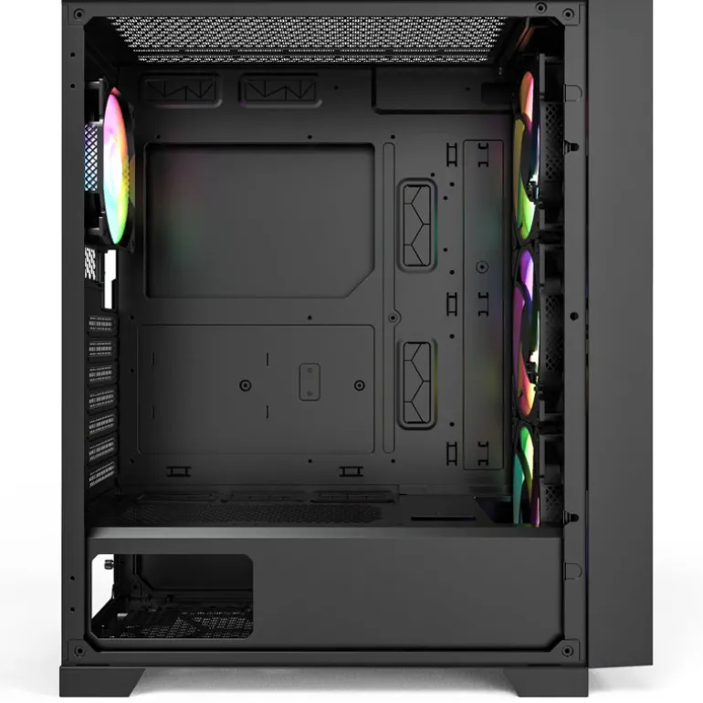 El AIR 1000 Premium de Montech está optimizado para el flujo de aire y viene con un total de cuatro ventiladores ARGB integrados de fábrica. Con esto, el fabricante sienta las bases para cada computadora de juegos que se enfoca en el rendimiento de enfriamiento . La caja consta de una construcción de acero resistente con una cubierta frontal completamente removible hecha de malla o vidrio templado y un panel lateral hecho de vidrio templado con bisagras. La tapa está hecha completamente de malla. La alta permeabilidad al aire beneficia la refrigeración de sus componentes.