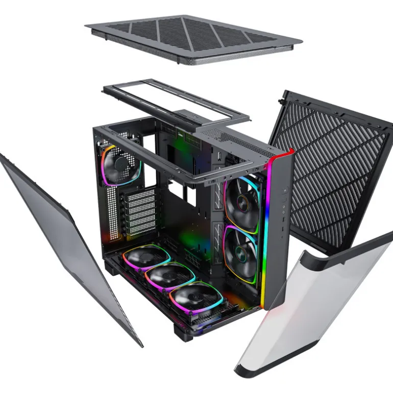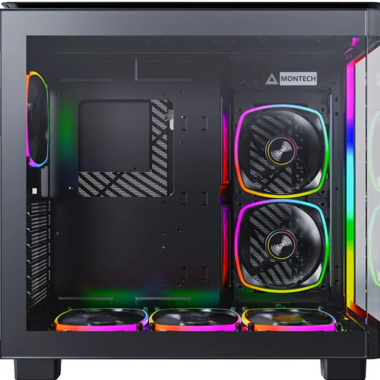 Descubre la cúspide de la innovación con la serie KING 95 de Montech, una obra maestra desatada que fusiona materiales premium con un diseño vanguardista. El KING 95, símbolo de calidad inquebrantable, presenta un cristal templado curvo de grado industrial para una visibilidad óptima. Su iluminación ARGB crea efectos artísticos deslumbrantes, mientras que su doble cámara ofrece una excepcional compatibilidad para tarjetas gráficas de la serie 40. Con opciones de refrigeración versátiles y detalles innovadores como el soporte de ventilador lateral patentado, KING 95 redefine la experiencia de construcción de PC, garantizando limpieza y personalización inigualables.
