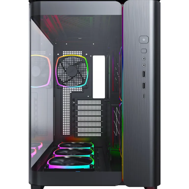 KING 95 introduce un soporte de ventilador lateral ajustable patentado que se puede girar hacia el frente para mejorar el flujo de aire. Este diseño ofrece versatilidad tanto para el rendimiento de refrigeración como para la estética, proporcionando opciones de personalización inigualables.