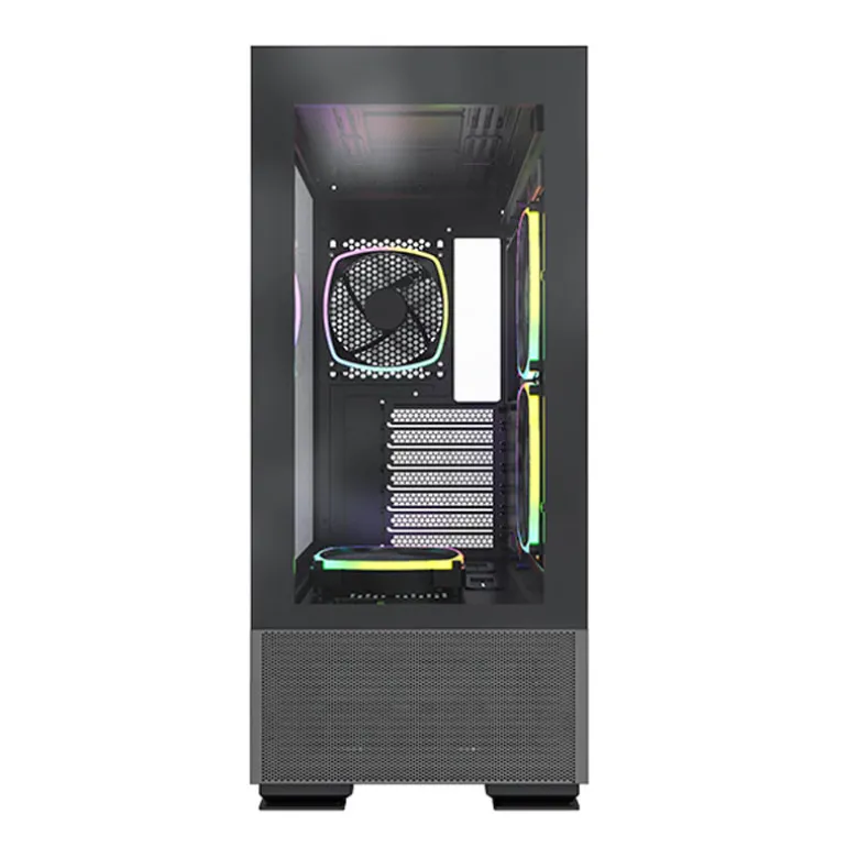 Los paneles frontales y laterales integrados, la malla fina que cubre toda la parte inferior de la torre y los ventiladores preinstalados de alta eficiencia, combinan la utilidad y la elegancia que coinciden con nuestro valor central del diseño, y también satisfacen todos los deseos de los usuarios. importa si es por rendimiento o apariencia.