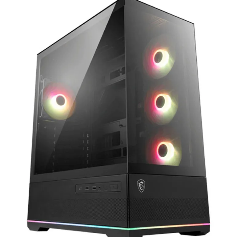 Diseñada para lucir tu montaje, la MSI MAG PANO 110R ofrece una visibilidad panorámica de 270° gracias a su cristal templado. Incluye ventiladores con aspas inversas y controlador ARGB integrado para una estética limpia y personalizable. Compatible con placas ATX y refrigeración avanzada, es ideal para setups potentes y bien ventilados.