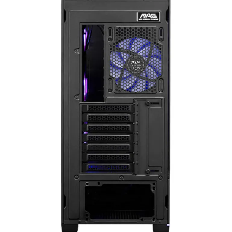 El MAG PANO 110R PZ incorpora un mayor número de rejillas de ventilación en los laterales y en la parte frontal de la caja, mejorando significativamente la disipación del calor. Admite hasta 10 ventiladores y viene equipado de fábrica con 3 ventiladores ARGB de aspas invertidas en el lateral y 1 ventilador ARGB estándar en la parte trasera.