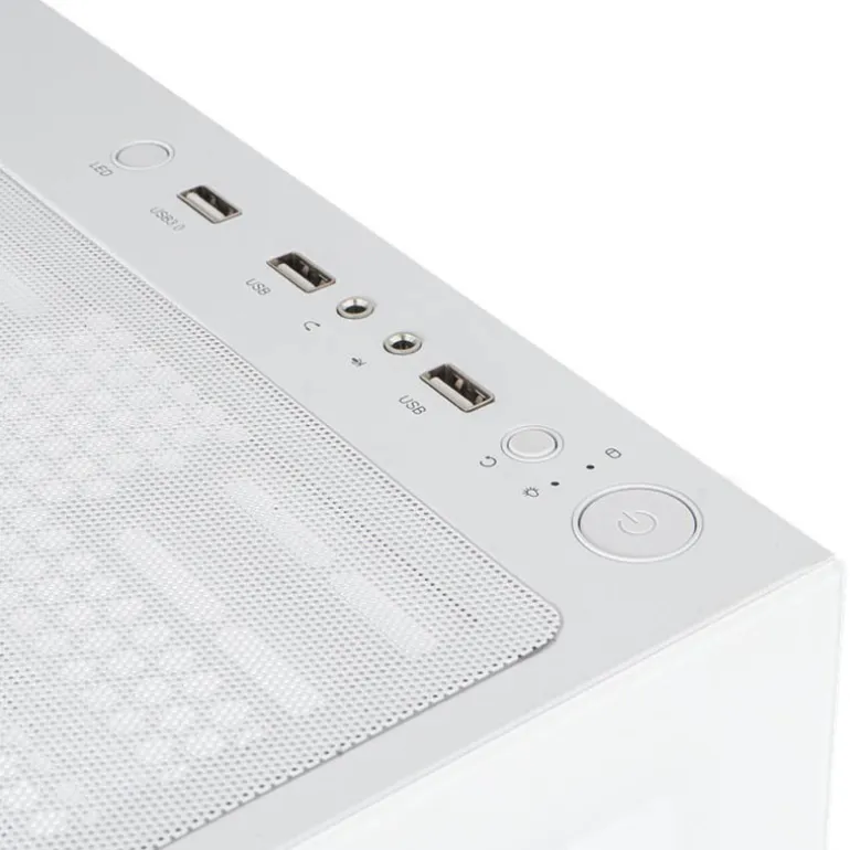 Con esta caja de Nox te podrás centrar en lo que realmente importa, alzarte con la victoria, ya que concentra los accesos principales en su parte superior. Aquí encontrarás un puerto dedicado al USB 3.0 y también dos puertos USB 2.0, así como las conexiones HD audio y micrófono.