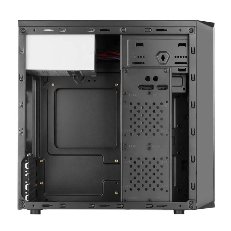 | OtrasCaracterísticas | Medios de almacenaje – Tamaños de disco duro soportados: 2.5,3.5″ Fuente de alimentación – Fuente de alimentación incluida: Si – Fuente de alimentación: 500 W – Ubicación de fuente de alimentación: Superior – Conector de poder ATX (20 + 4 pin): Si – Conector de potencia ATX (24 pines): Si – Número de conectores SATA: 3 – CPU conector de alimentación (4 +4 pines): Si – Conector de poder floppy: 1 Peso y dimensiones – Ancho: 170 mm – Profundidad: 330 mm – Altura: 350 mm – Peso: 3,2 kg |