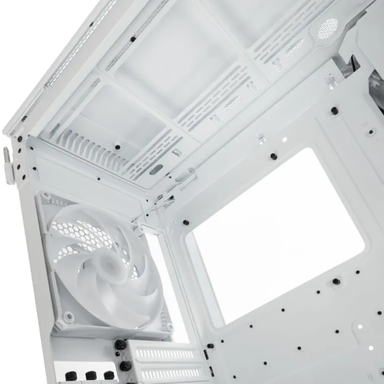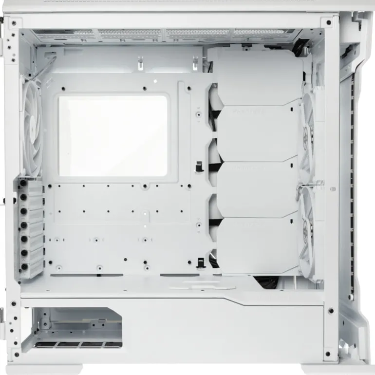 La torre está diseñada para placas base hasta el estándar E-ATX y admite enfriadores de CPU grandes de hasta 190 mm de altura y refrigeración por agua para enfriar el hardware. Se pueden instalar hasta dos radiadores de 360 ??mm en la caja premium en el frente o en la tapa al mismo tiempo. Se puede montar un máximo de un radiador de 420 mm en la parte delantera. Por lo tanto, la carcasa está predestinada para AiO y refrigeración por agua personalizada.