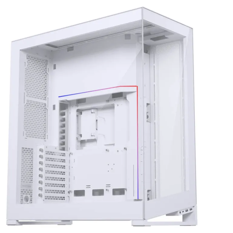 El Phanteks NV7, con su diseño de propósito inconfundible, destaca los componentes del sistema con la placa base en el centro. Un elemento de diseño definitorio de la NV7 es su marco exterior fuerte y definitorio que captura y acentúa los componentes de hardware.