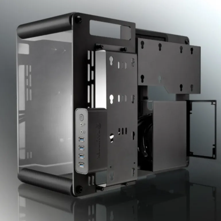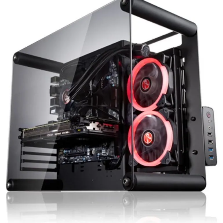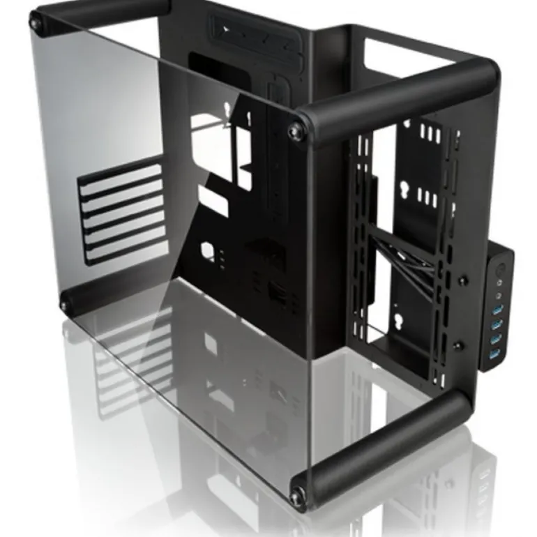 PAEAN M, arte de diseño en su mejor momento por RAIJINTEK – un chasis Micro ATX de marco abierto, la estructura principal incluye placa intermedia, hecha de aluminio de 3,0 mm con chorro de arena negro, cilindro de aluminio 4pcs con tubo de goma y vidrio templado de 4,0 mm en la parte delantera.