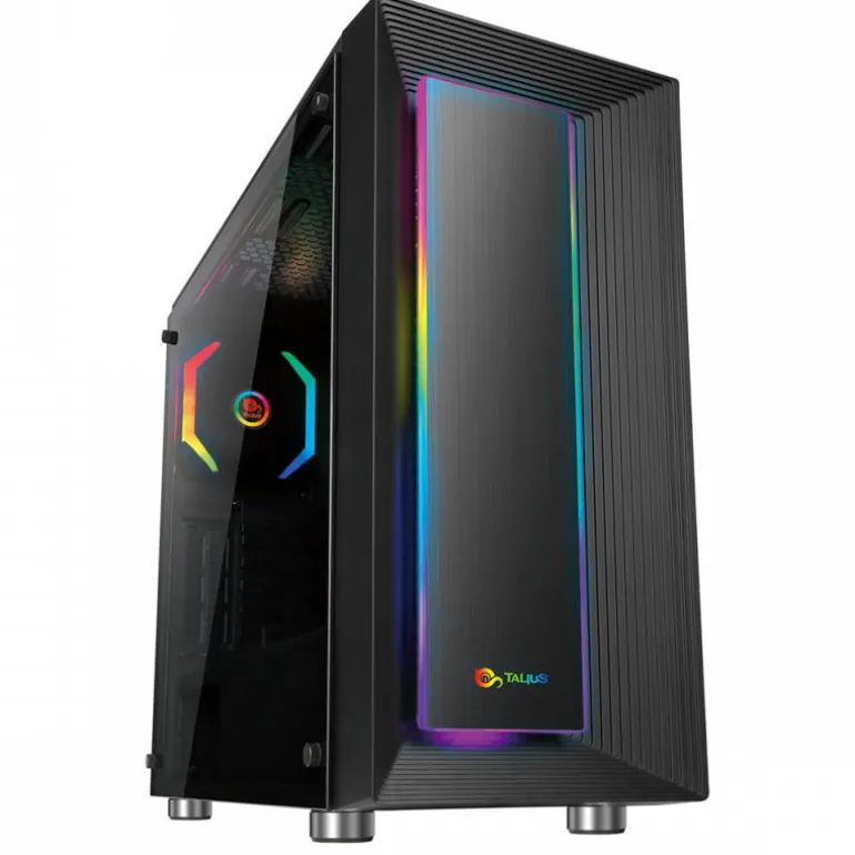 Caja Gaming en formato ATX con cristal templado y conexión USB 3.O. se caracteriza por su frontal con marco LED full Spectrum que a la vez se sincroniza con el ventilador trasero Shield.Con pequeña joya de la Serie Shield de Talius podrás montar un equipo gaming de altas prestaciones a un reducido precio sin renunciar a nada.Cristal templado, Sujeción VGA incorporada, pasa cables protegidos con gomas, capacidad para 4 SSD y 2 HDD…Descubre la nueva Serie Shield de Talius.