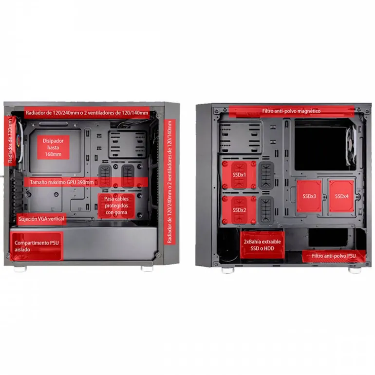 - Ventiladores Opcionales 2 Superiores De 12cm O 14cm