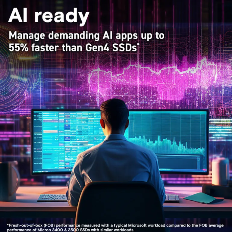 Con NAND de 232 capas de última generación, la SSD Crucial T705 Gen5 le brinda una ventaja en el rendimiento de los juegos y las cargas de trabajo de creación de contenido.