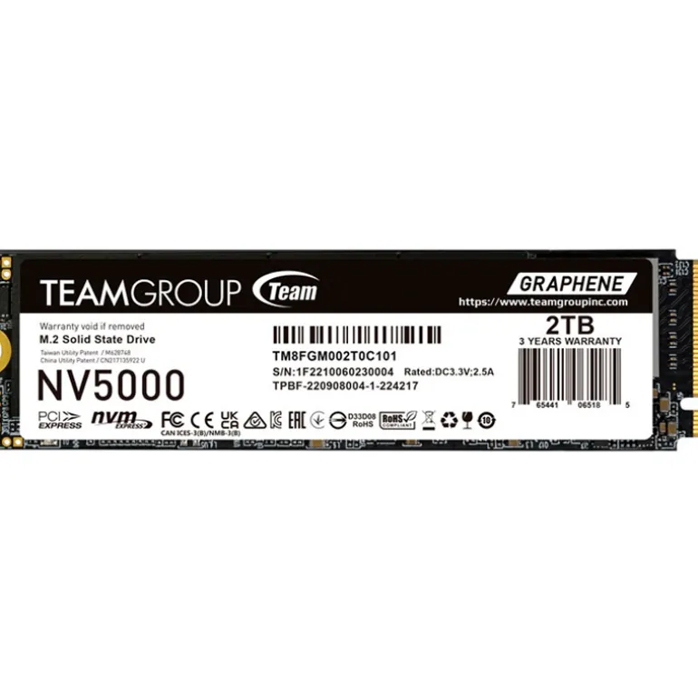 La exclusiva etiqueta disipadora de calor con grafeno, desarrollada por TEAMGROUP, ayuda a mantener temperaturas óptimas y un rendimiento estable en todo momento. Compatible con las plataformas más recientes de Intel y AMD, la NV5000 es perfecta tanto para PCs de escritorio como para laptops.