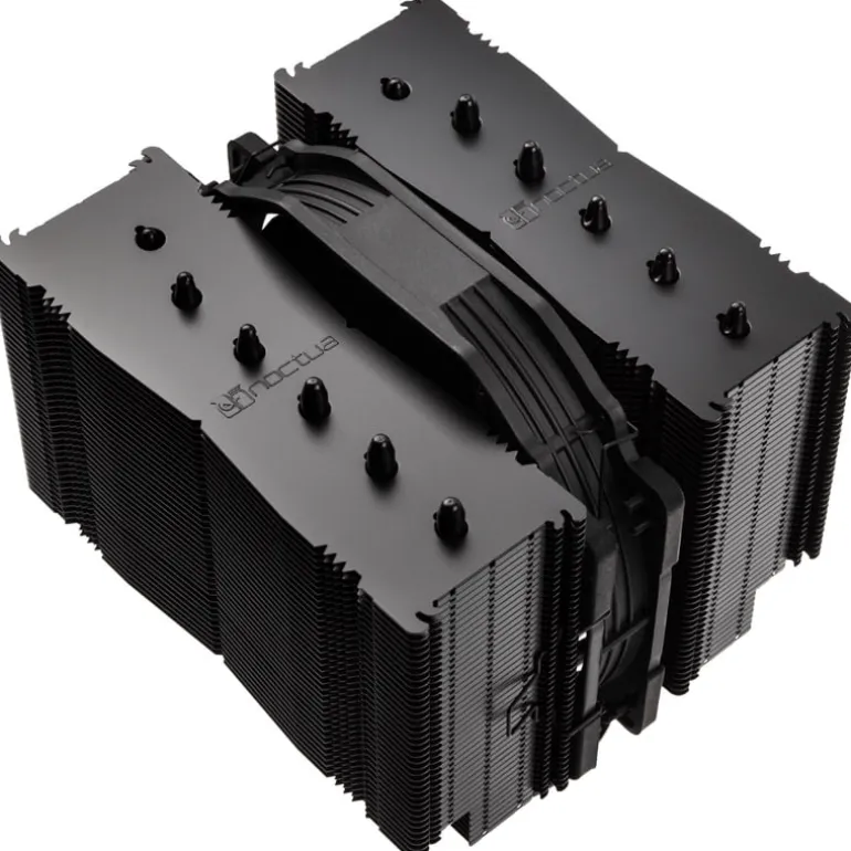 El NH-D15S chromax.black es totalmente negro: Incluye un disipador recubierto en negro, ventiladores también negros con paneles anti-vibración del mismo color, ganchos de ajuste y piezas de montaje negras. Combina perfectamente con estructuras totalmente negras y también es muy fácil de integrar en otras combinaciones de colores.