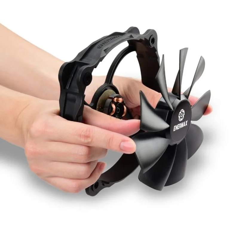 - Aspas Enermax High Pressure. El ETS-T50 AXE Silent Edition está equipado con un ventilador de alta presión de 14 cm diseñado para su uso en los disipadores de CPU. La tecnología patentada Twister Bearing garantiza un funcionamiento suave y una larga vida útil de hasta 160.000 horas MTBF. Las 9 aspas de alta presión giran a 500 鈥