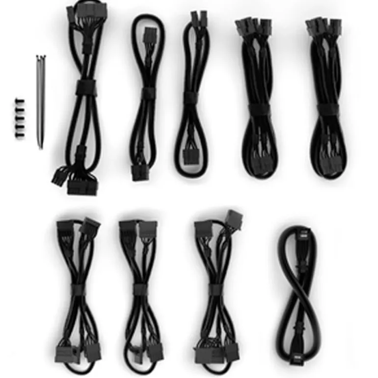 Los cables modulares con fundas de hasta 100 cm de longitud simplifican la instalación de los componentes y reducen el molesto desorden. Esto da como resultado un mayor flujo de aire y una mejor refrigeración, incluso en las cajas de PC más grandes.