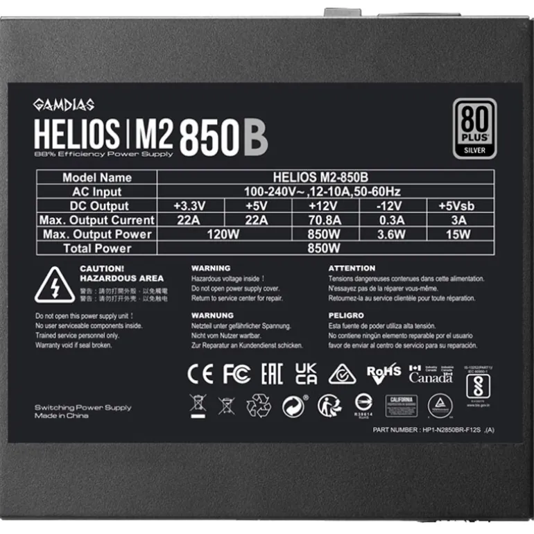 Fuente/PSU Gamdias Helios M2-850B 80 Plus Silver 850W ATX 3.1 PCIE 5.1