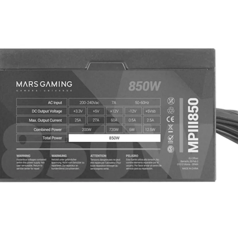 Fuente/PSU Mars Gaming MPIII850 850W Eficencia Digital APFC 85% AI-RPM Negro